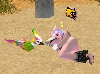 食べると体の色が変わる綿あめがあったので、試しにペットのライムスプライトに食べさせたら羽だけ赤に。